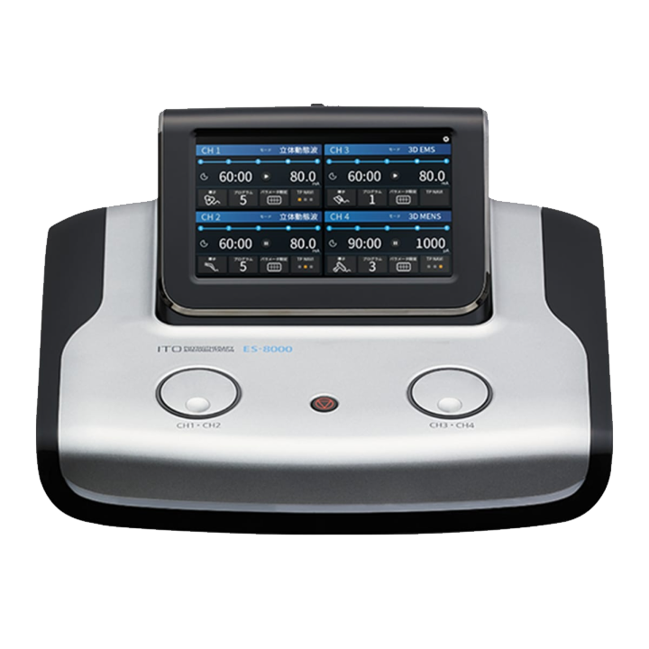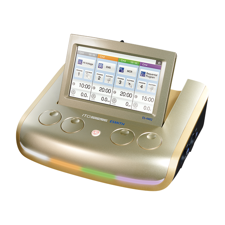 Hi-Voltage、EMS、MCRの3つの電気刺激モードを搭載。コンパクトサイズでありながら、最大500Vp-p出力、4チャンネル独立操作が可能です。各チャンネルで異なる治療モードと導子が同時に使用できるので、複数人のスタッフで複数の患者様を同時に治療することができます。スペースも時間も有効活用しながら、患者様に最適な治療を実現します。